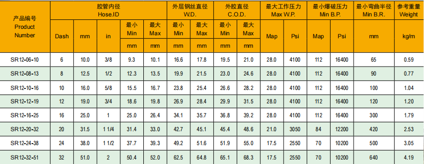 應(yīng)用標(biāo)準(zhǔn):GB/T 10544 R12,EN 856 R12,SAE J517 R12