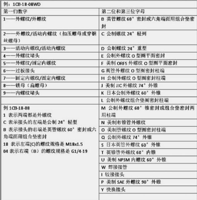 3在原代號(hào)后加WD表示配膠墊(ED圈)密封柱端例:1CB-22-08WD
