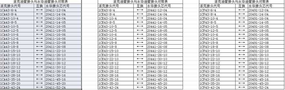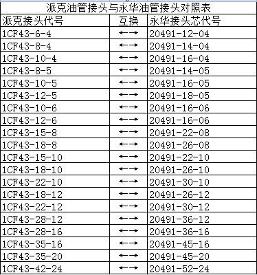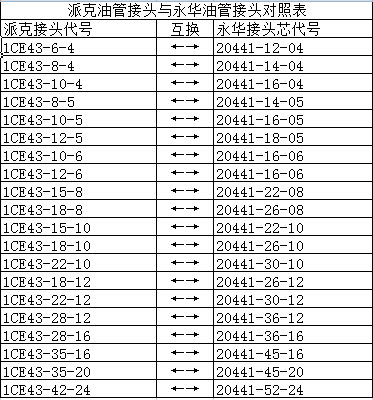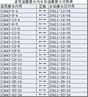 派克液壓油管接頭代號與永華液壓軟管接頭代號對照表