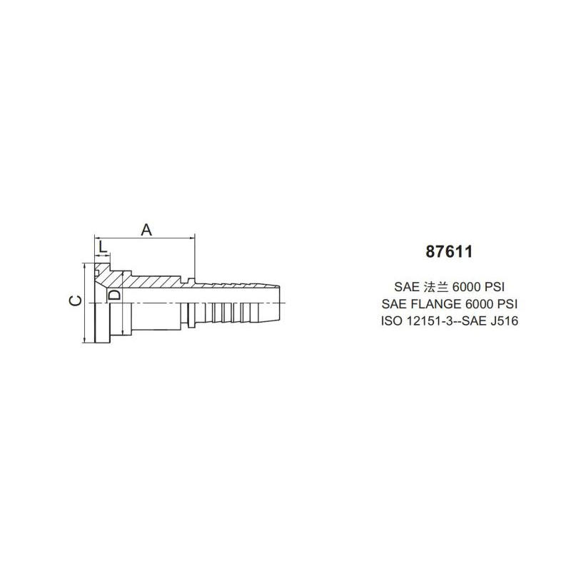 扣壓式接頭87611 直通 SAE 法蘭(flange)6000 psi