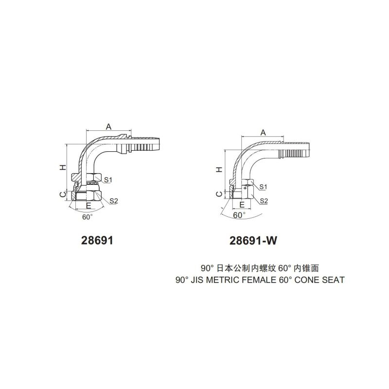 永華標(biāo)準(zhǔn)扣壓式接頭 28691和28691-W 90日本公制內(nèi)螺紋60內(nèi)錐面 管接頭 鎖母接頭90JIS METRIC FEMALE 60 CONE SEAT永