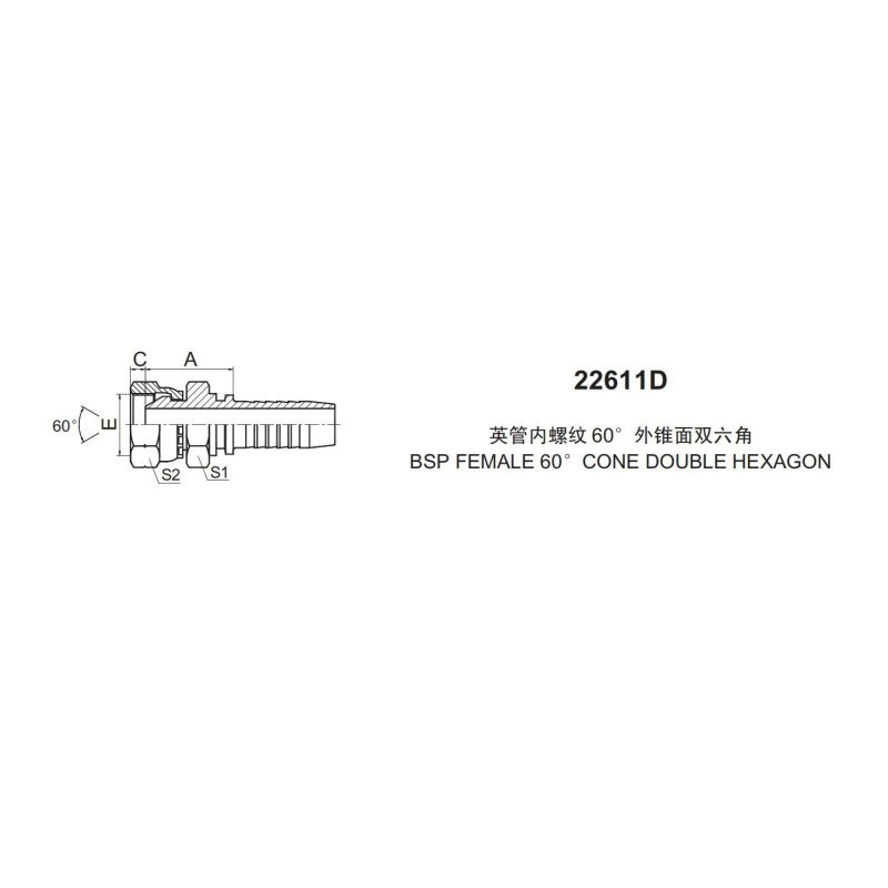 永華標(biāo)準(zhǔn) 扣壓式接頭 22611D 英管內(nèi)螺紋 60°外錐面 雙六角螺母-BSP螺紋 國(guó)產(chǎn)接頭 直通管接頭 總成接頭 液壓器材接頭