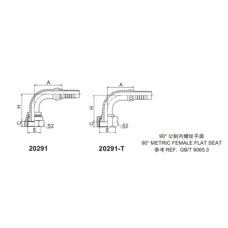 永華標(biāo)準(zhǔn) 扣壓式接頭 20291和20291-T 90°公制內(nèi)螺紋 平面-REF.GB/T 9065.3 平面密封面 國(guó)產(chǎn)液壓接頭 總成管接頭 公制接頭 內(nèi)螺紋接頭