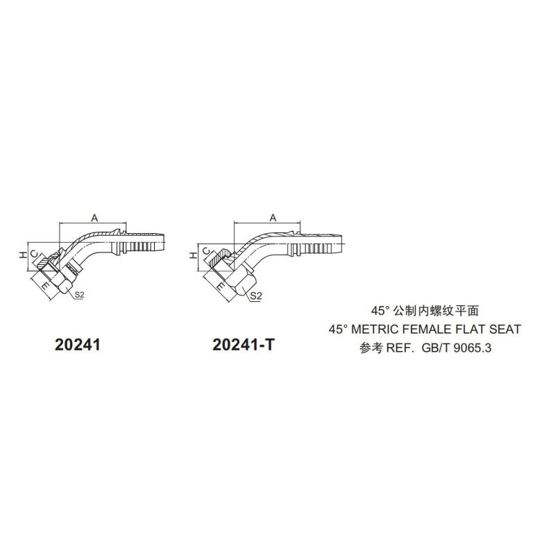 永華標(biāo)準(zhǔn)扣壓式接頭 20241和20241-T 45公制內(nèi)螺紋 平面密封面45 METRIC FEMALE FLAT SEATREF. GB/T 9065.3該