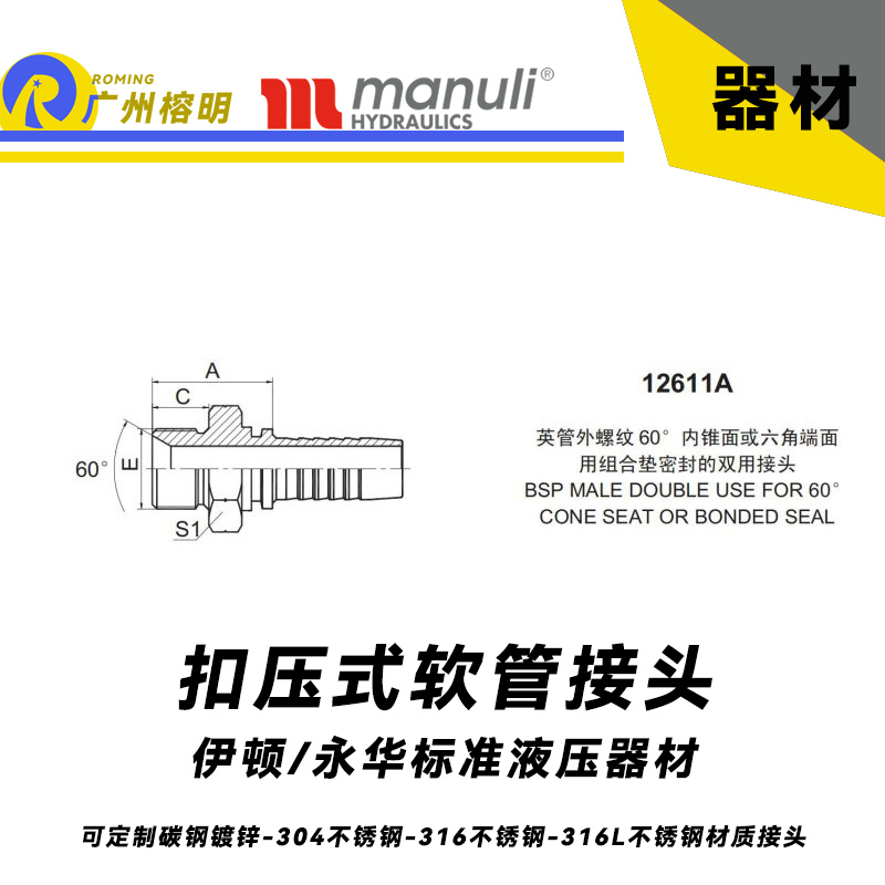 該接頭常用材質(zhì)有碳鋼彩、碳鋼鍍白鋅、304不銹鋼、316不銹鋼、316L不銹鋼,用戶可根據(jù)需求聯(lián)系我們進(jìn)行采購(gòu),此外,我們還可進(jìn)行加工定制各種非標(biāo)接頭以及給膠管-油管-軟管-水管進(jìn)行扣壓接頭加工制作成總成。